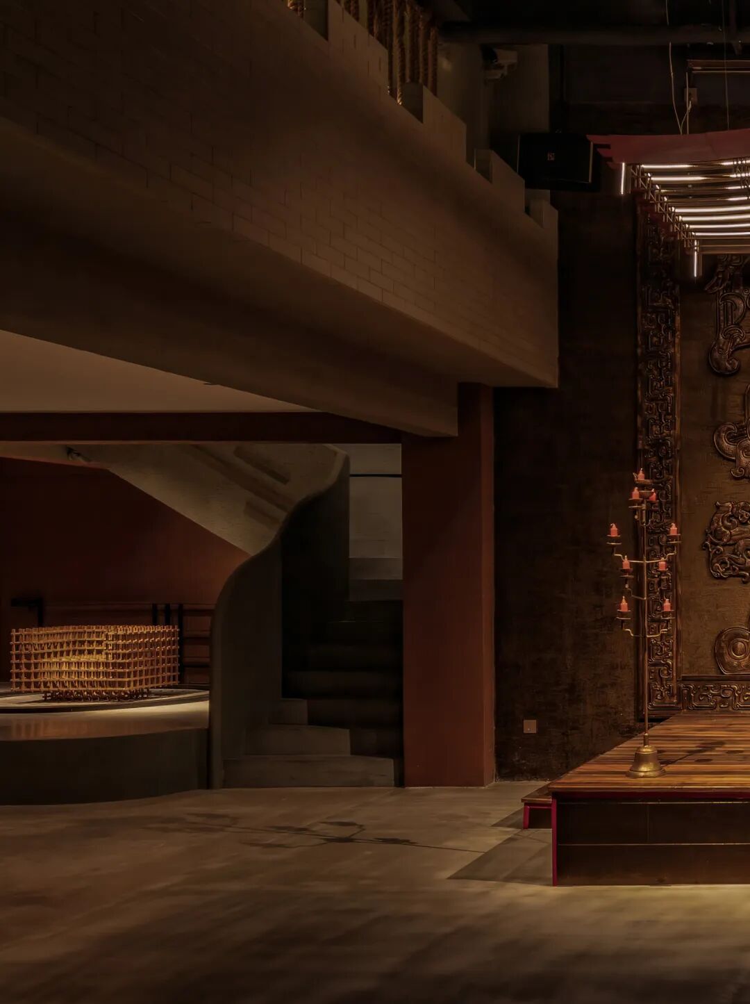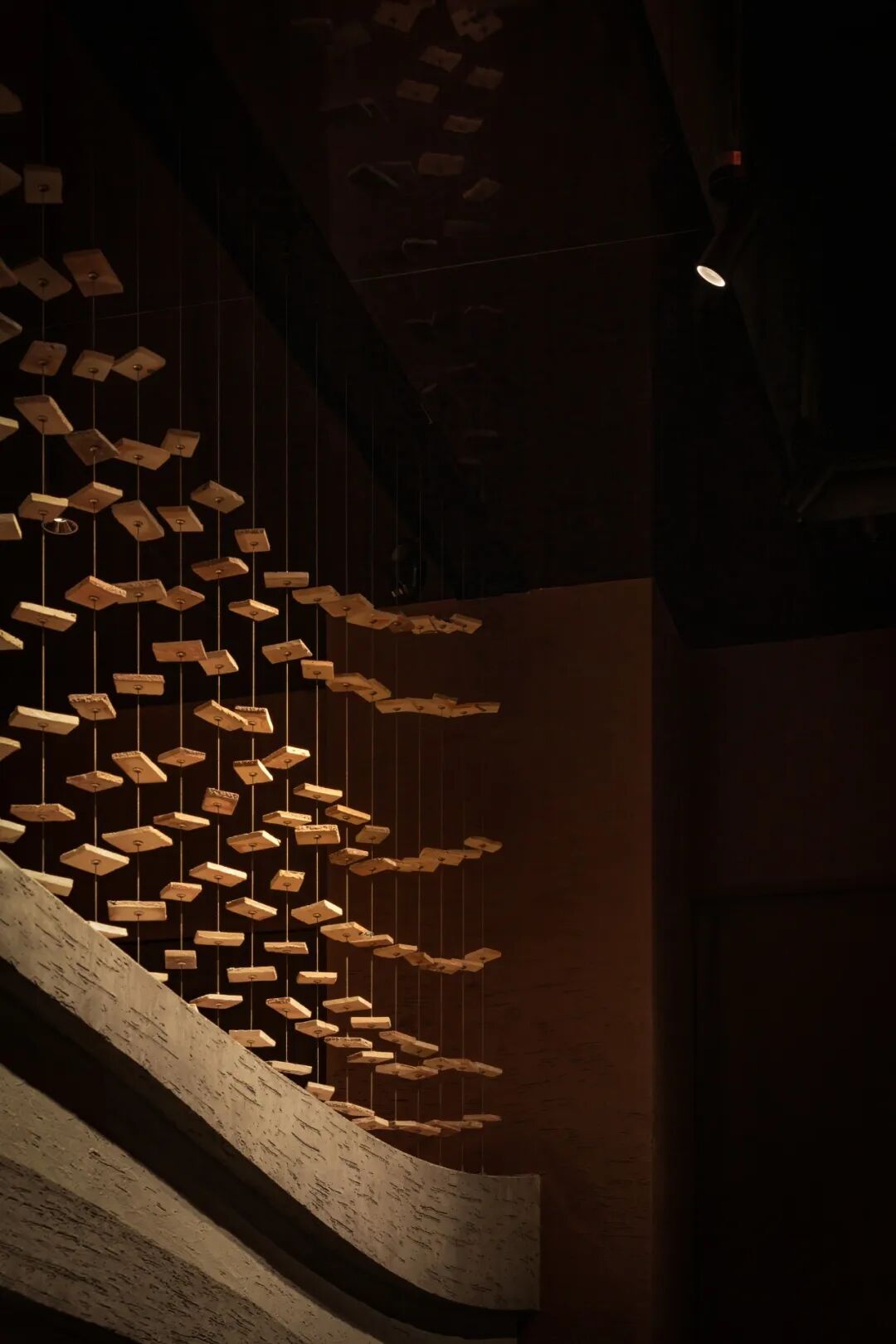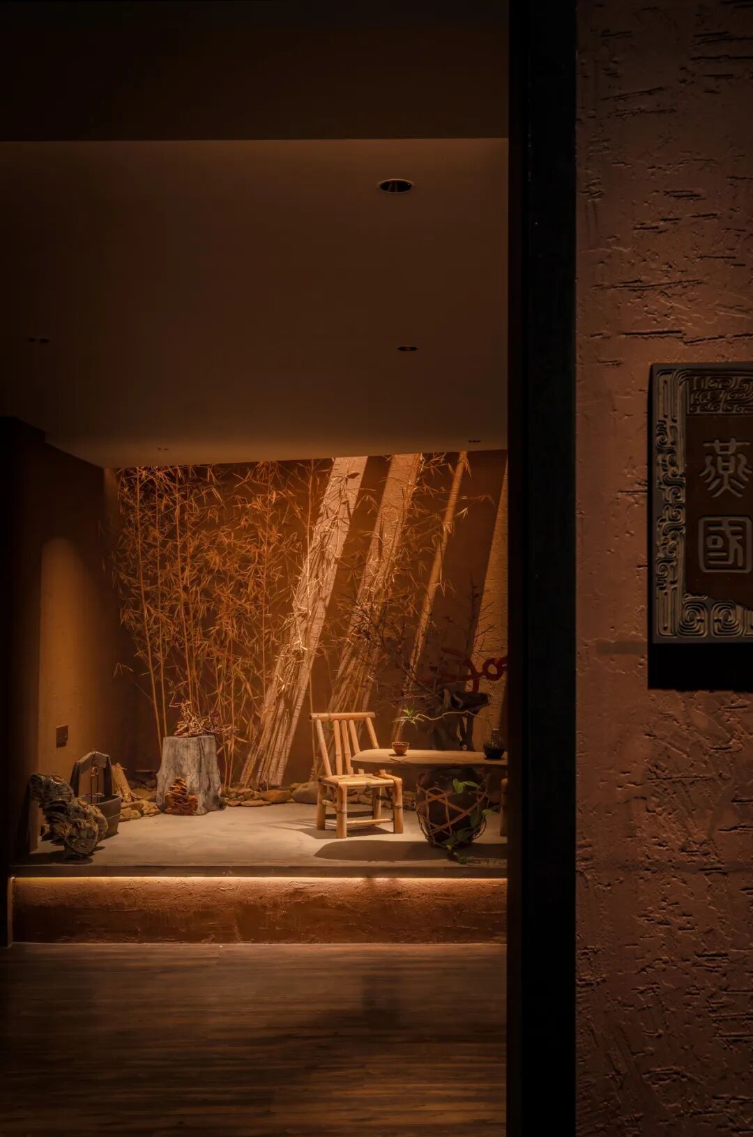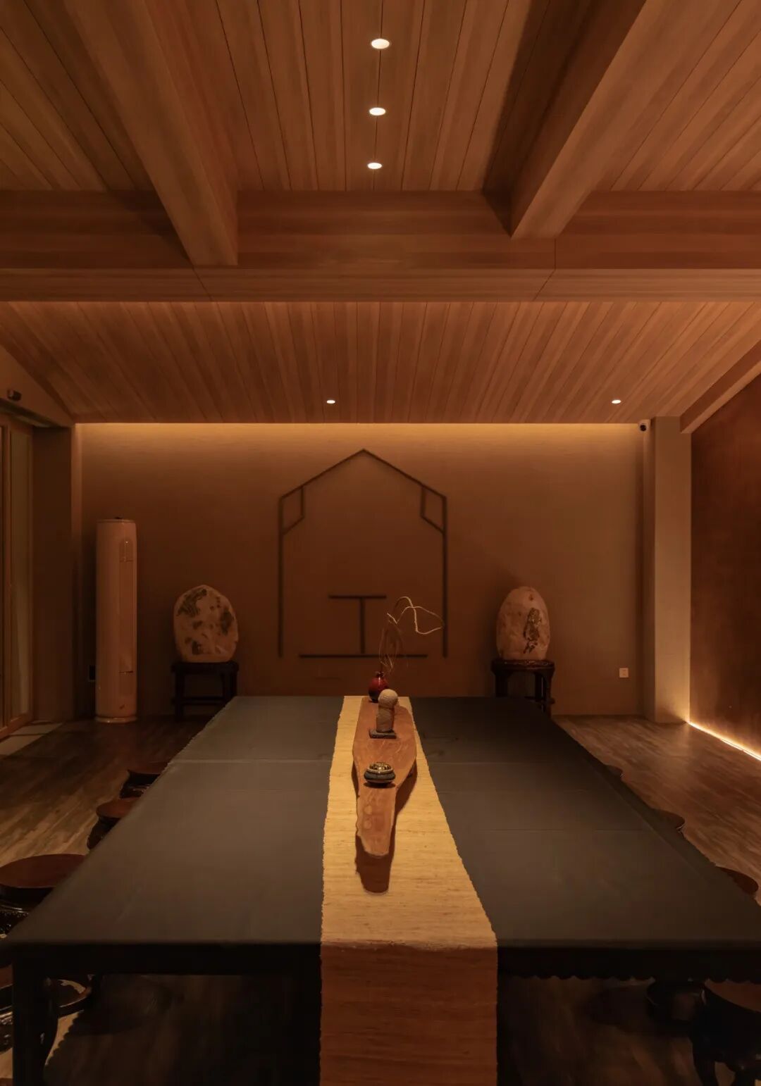 暖色温增强木材材料的质感,通过营造阴影与亮点的对比,增加空间的层次感,让人感受到静谧与深远的氛围。