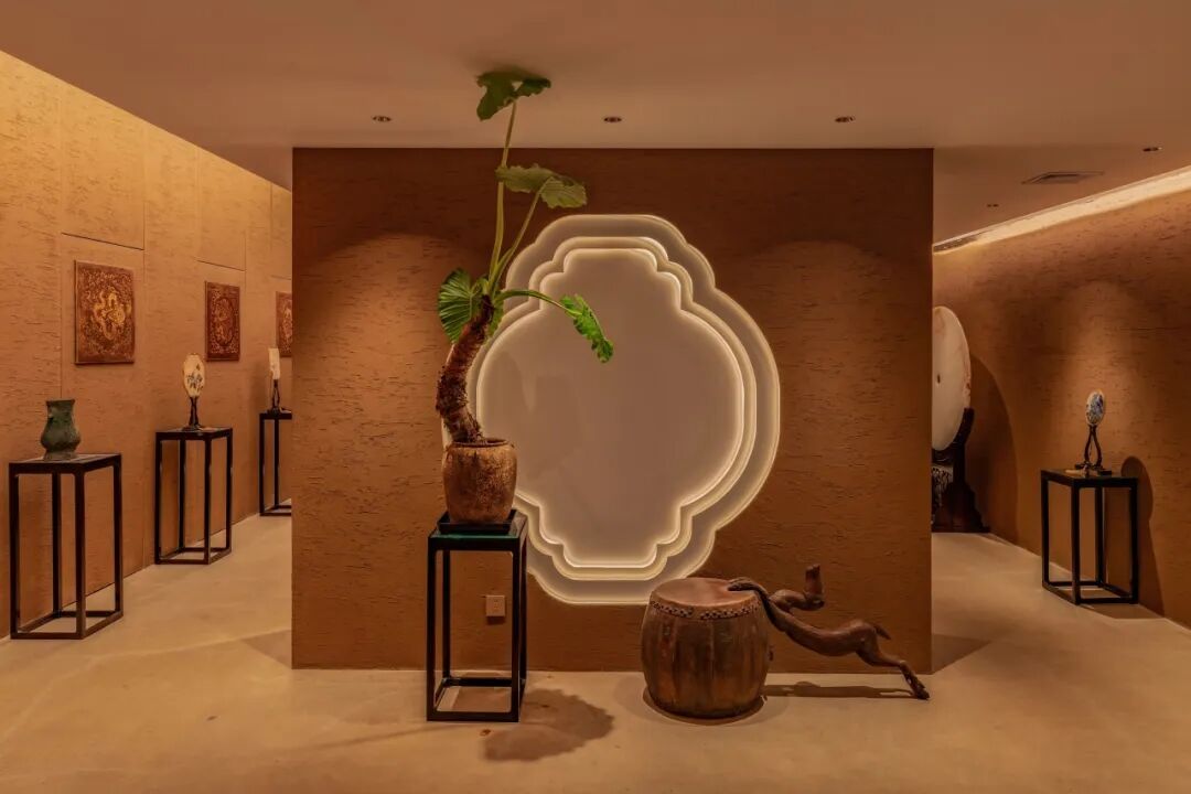 灯光设计不仅要考虑灯光色彩、照度等基本因素,还应考虑灯光设计与内部展品本身的关系,增强光影的表现,呈现明、暗、虚、实的效果。
