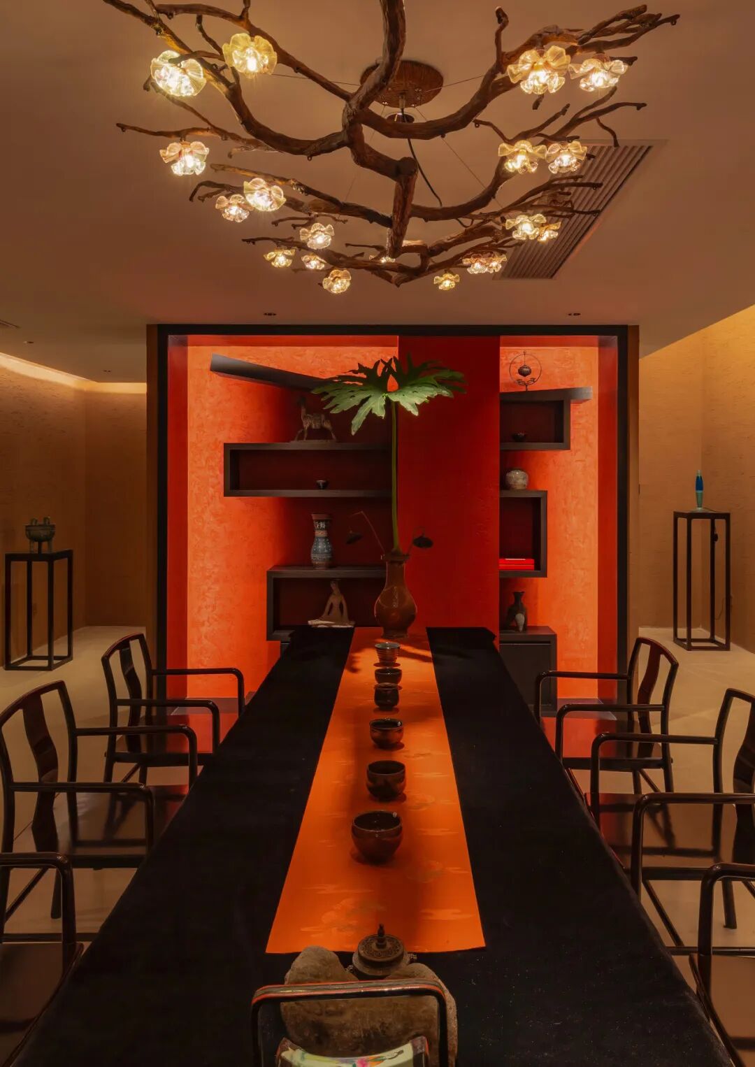茶室灯光采用漫反射,使光线柔和地扩散在空间中,带来宁静、淡雅的氛围。