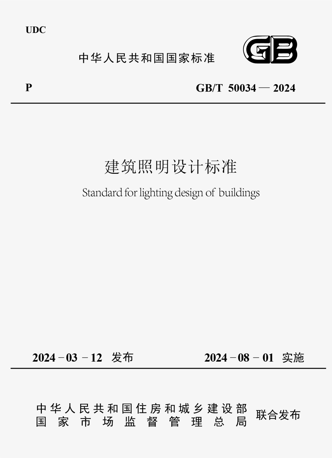 住建部批准《建筑照明设计标准》为国家标准,编号为GB/T50034-2024,自2024年8月1日起实施。