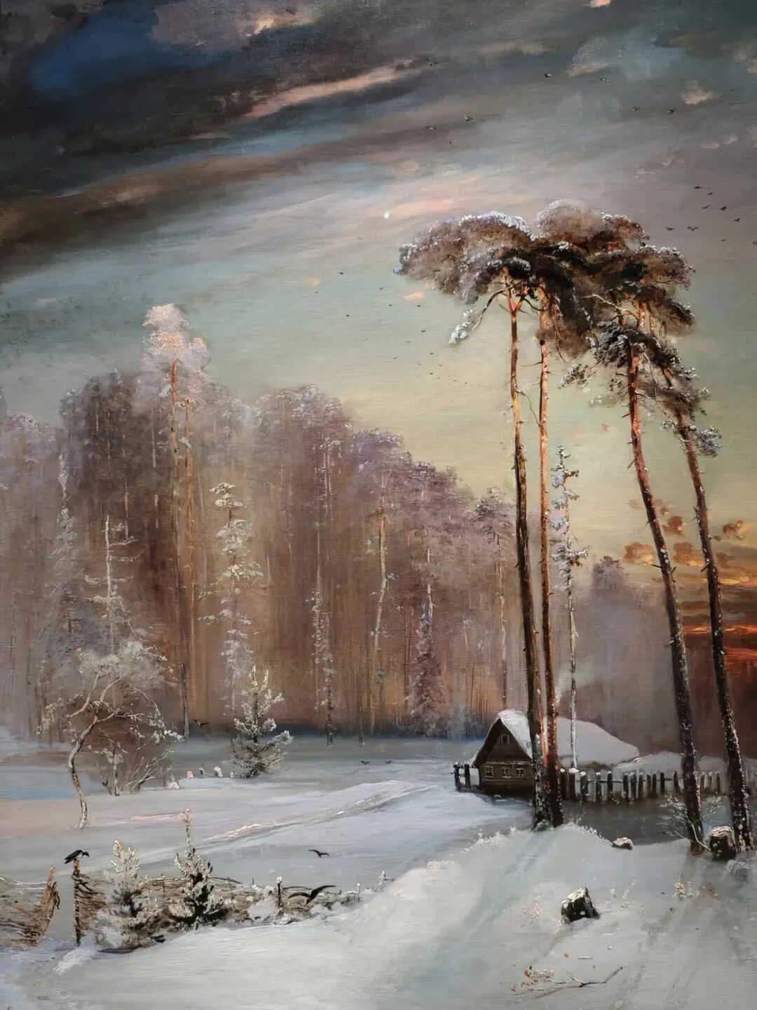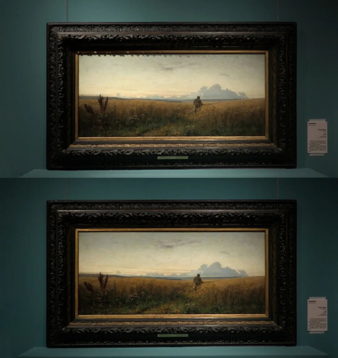很多油画的笔触有强烈的起伏,而笔触的方向是随机的。对于一幅画,整体上好的打光,可能带来局部的笔触在主要观赏方向上强烈的反光。所以油画调光的第一步,和浅浮雕的照明类似,是确定必须避免的投光方向。