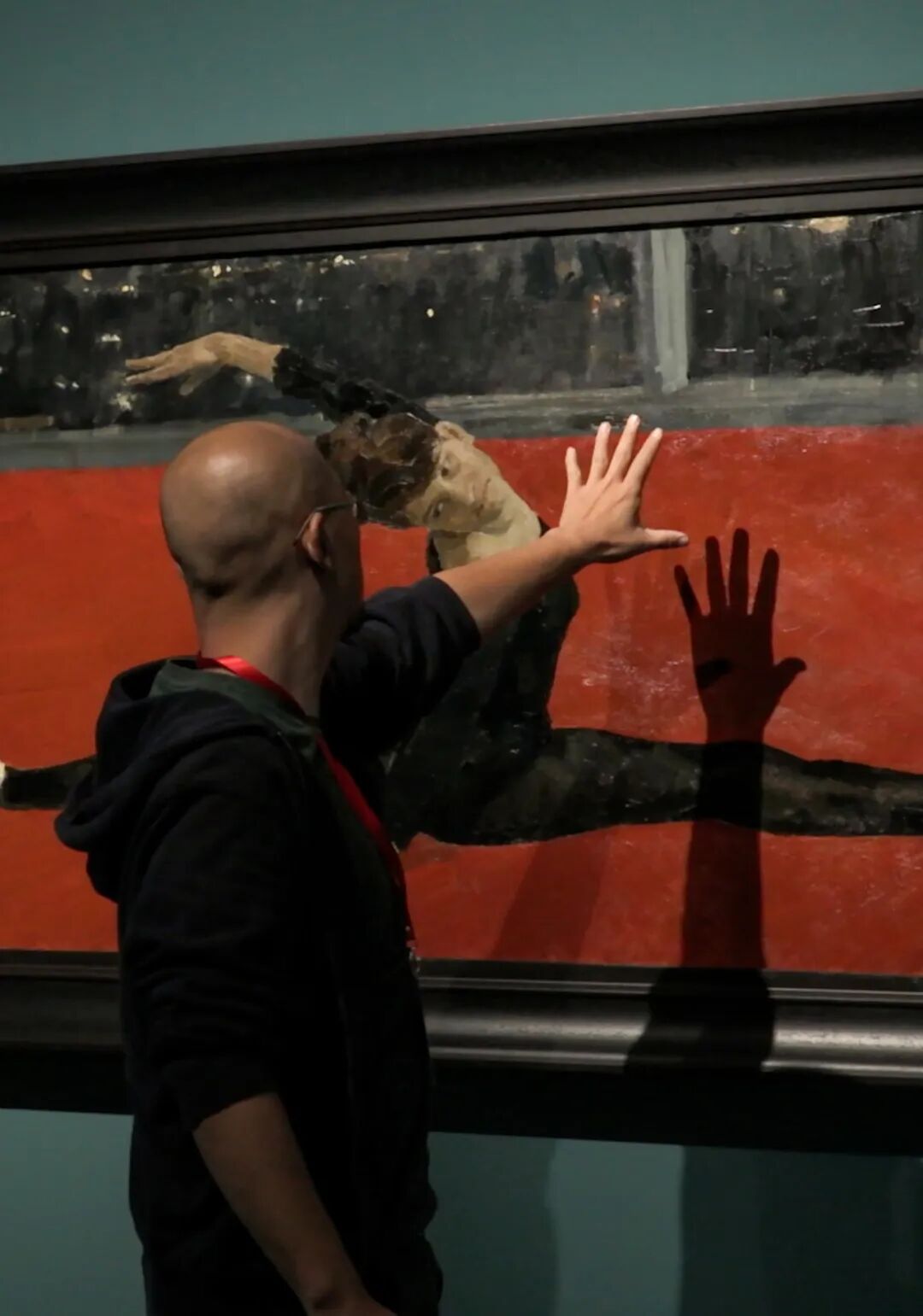 这是个重要的小问题。有的画框很厚重,高出画面很多。从比较接近画的位置投光,容易在画面上形成很深很长的影子。离画面远,投比较平的光,又容易在展厅大范围内形成眩光。需要找到合适的灯位,平衡二者。