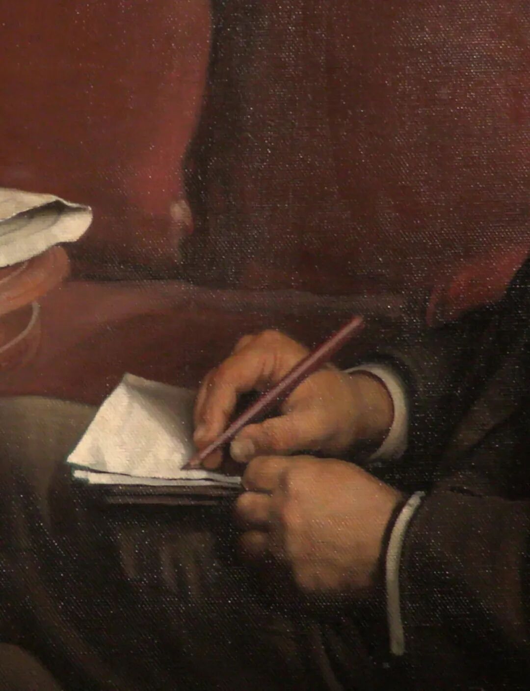 投向画面的光,不会是完全“客观”的,是光参与到画面的再创作。比如这个坐在桌子前的人。最初的光主要投射在人的头上、身上。经过比较,最后选择了光主要投在桌面的报纸和人的握着笔的手上。相对应的,呈现的视觉重点和传达的故事,是不同的。