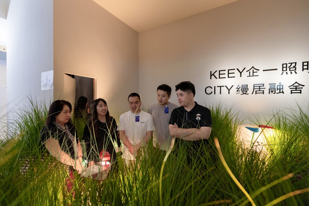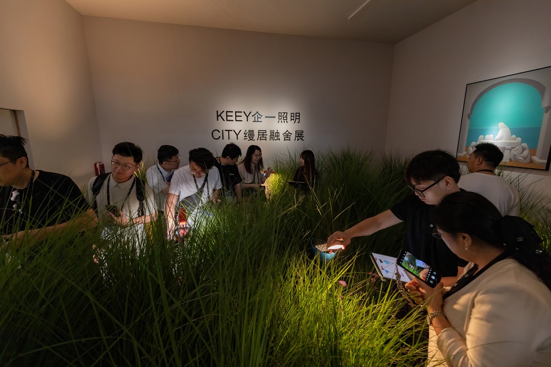 企⼀照明携全新推出的健康艺术照明「小鸟系列」、「树系列」灯具 和 KEEY iS 健康⼈居智能控制系统正式亮相,呈现了⼀场光与空间交织的视觉盛宴,吸引了众多观众参观与体验。